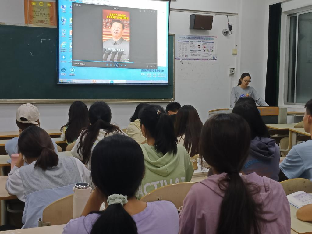 其次,学院团委负责人辛雅婷老师深入2018级日语班、商务英语班、2020级英语2班团支部参与主题团日活动,在聆听完团支书或其他团干部宣讲后,同学们踊跃发言并交流学习心得,辛雅婷老师分别点评了同学们的发言并再次和大家一同观看了七一讲话视频,最后,在所在团支部进行了习近平总书记七一讲话内容的主题宣讲。着重从“五个庄严宣告”、“四个伟大成就” “伟大建党精神” ”九个必须 ”出发,为大家全面解读这次会议精神。同学们不禁感慨自己何其有幸生于华夏,生于盛世,见证百年。我们长在红旗下,生在春风里,不经战乱,不缺衣食。人民有信仰,国家有力量,民族有希望。目光所致皆为华夏,五星闪耀皆为信仰。