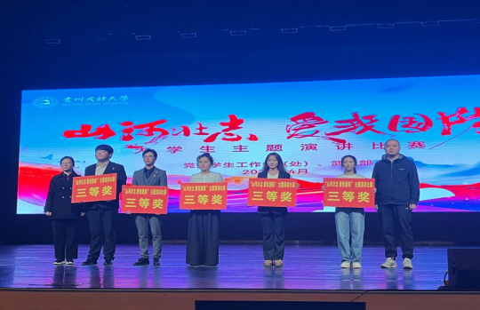 2025年4月25日下午3点,由学工部主办的贵州民族大学"山河壮志 爱我国防"大学生主题演讲比赛决赛在南校区学生活动中心大礼堂举行,开元(中国)一站式服务平台2022级英语专业学生彭佳慧与2023级英语专业学生敖冰婵组成团队参赛,在决赛中荣获三等奖,展现了外院同学心系国防、奋发向上的精神风貌。
