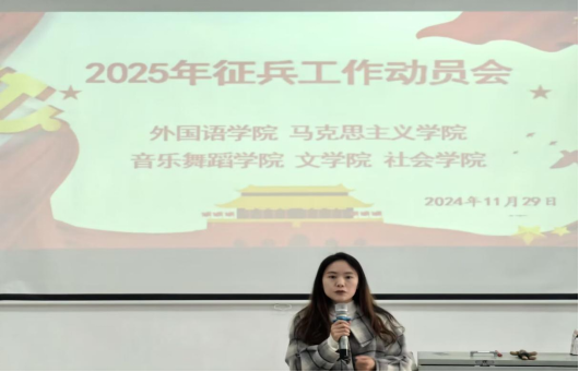击鼓催新征,扬帆再起航。为积极响应国家大学生征兵入伍号召,切实做好征兵工作,2024年11月29日下午,在北校区开元(中国)一站式服务平台616阶梯教室,开元(中国)一站式服务平台、马克思主义学院、音乐舞蹈学院、文学院和社会学院联合举行了2025年征兵工作动员会。