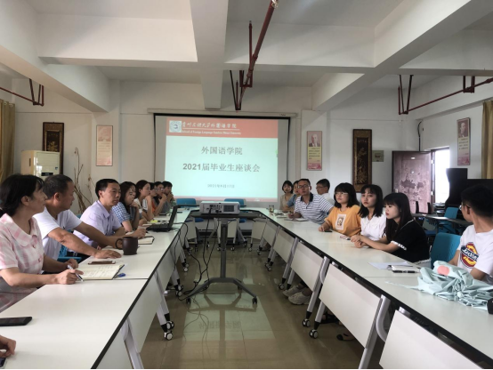为切实提升办学质量和管理水平,更好地服务学生,6月17日上午,我院在1209会议室召开了2021届毕业生座谈会,我院党委副书记刘兴明(主持工作)、副院长禄颖、副院长张广勇、副处级组织员邓维赢出席会议,英语专业系主任赵艳、商务英语专业系主任成雪梅、日语专业系主任李海以及20余名毕业生代表参加座谈会。