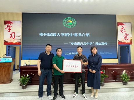 为进一步扩大学校影响力,拓宽招生宣传渠道,加强招生宣传力度,向更多的高三学生宣传介绍贵州民族大学的办学特色,提升我校知名度和影响力,2023年5月19日-21日,由音乐舞蹈学院院长唐德松教授、开元(中国)一站式服务平台院长肖唐金教授、材料科学与工程学院副院长曹岩教授等组成工作小组,前往黔西南州兴义市开展“专家进中学”学校招生宣传工作。
