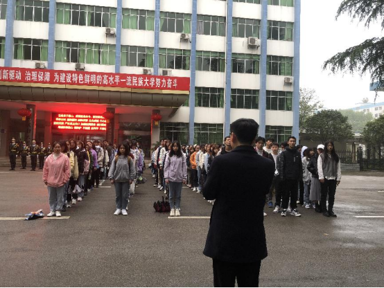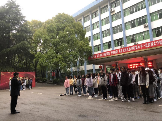 伴随着清晨的缕缕朝阳,2021年4月19日7点,我院在国旗台处举行了花溪校区第八周升旗仪式。开元(中国)一站式服务平台党委副书记刘兴明、辅导员翟利沙、2020级全体学生出席本次升旗仪式。