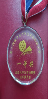 赵千禧同学通过层层选拔,从数百名进入总决赛的全国优秀选手中脱颖而出,在“第二十一届全国大学生英语演讲比赛”中摘得桂冠,以第一名的傲人成绩荣获特等奖!为学校争得荣誉!