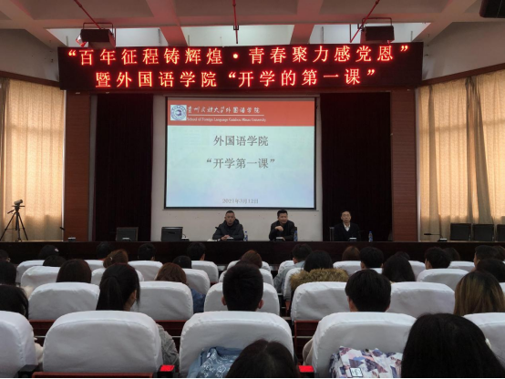 根据学校关于召开新学期第一课的通知要求及工作实际,我院于2021年3月12日下午1:30在十五栋圆形会议室举行了以“百年征程铸辉煌·青春聚力感党恩”为主题的“开学第一课”。