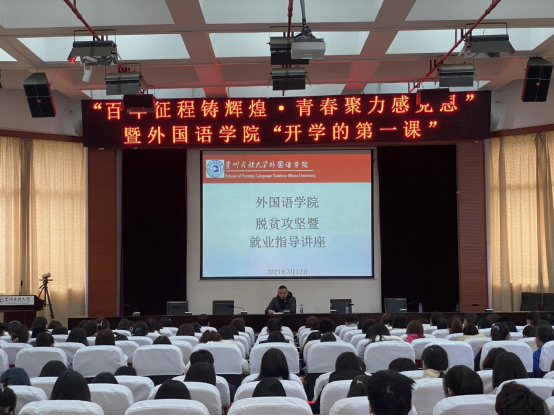 “开学第一课”还邀请脱贫攻坚代表范玮同志为学生讲述脱贫攻坚暨就业专题讲座,结合自身的脱贫攻坚事迹,把脱贫攻坚成果有机融入“开学第一课”,在开学期间面向广大青年学子讲述脱贫攻坚故事,传递贵州脱贫攻坚精神,激励青年在实现“两个一百年”奋斗目标中接续奋斗、奋勇担当。就业讲座中学生踊跃提问,范玮同志一一进行解答,让同学们对基层工作进行了全面深入的了解,学生纷纷表示要练就过硬本领,发挥青年的奋斗精神,走好新时代长征路,以实际行动迎接建党100周年。会后学生普遍反响好,达到了授课的目的和意义。