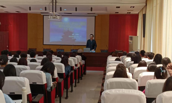 宋协毅教授首先介绍了新的形势下学习日语所要具备语言运用能力、异文化的理解能力和表达能力,列举张璐、张京等优秀外语翻译工作者成功背后所付出的艰辛,鼓励同学们抵制手机游戏的诱惑,刻苦学习,成为宣传中国、讲述中国故事的主人公。