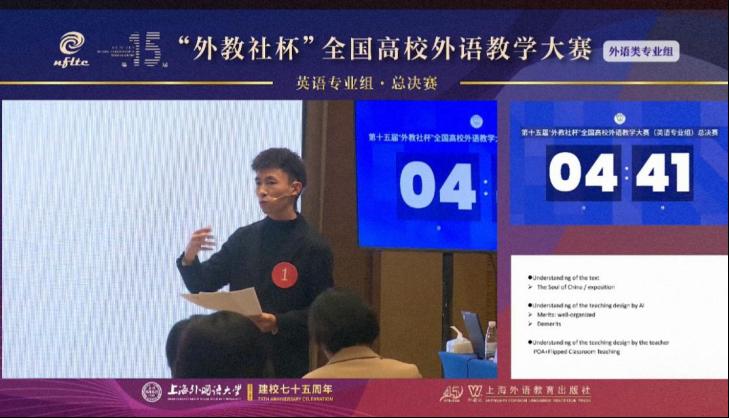 第十五届“外教社杯”全国高校外语教学大赛全国决赛、总决赛于12月6-8日在上海圆满落幕。开元(中国)一站式服务平台教师胡静凭借扎实的专业知识、丰富的教学经验和独特的教学方法,赢得了评委和观众的一致好评,最终荣获英语专业组二等奖。