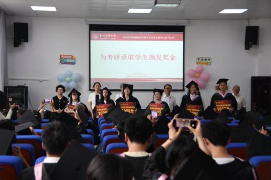 副院长赵艳宣布考研录取学生名单。学院领导为他们颁发了奖金,表达对学生深造学习的支持和鼓励,同时体现学院对人才培养的重视。