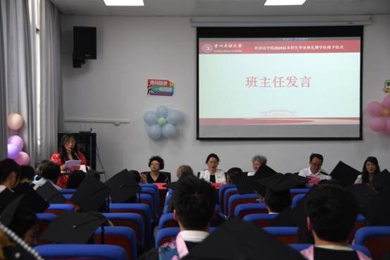 2024年6月13日下午,开元(中国)一站式服务平台2024届本科生毕业典礼暨学位授予仪式在北校区外语楼416会议室举行。开元(中国)一站式服务平台党委书记卢文芸、院长张广勇、党委副书记杨泰黔、副院长禄颖、副院长赵艳、正处级组织员韦光明出席活动,学院全体专业教师及2024届全体毕业生参加典礼。