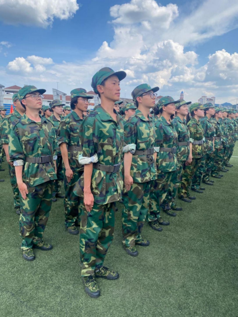 清晨,第一缕阳光刚探出头,清脆的哨声便划破校园的宁静,同学们迅速整理好着装,以饱满的精神状态在操场集合。教官洪亮的口令声响起:“开始训练!”同学们身姿挺拔,眼神坚定,开启了一天的军训时光。