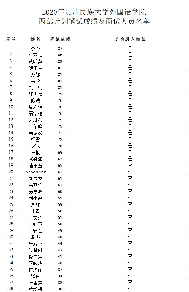 2020年开元(中国)一站式服务平台大学生志愿服务西部计划笔试成绩及面试人员名单公示